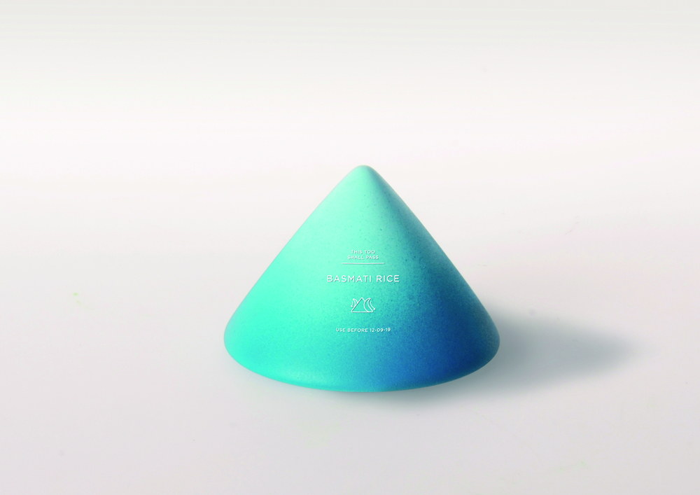 角锥形的柔软蜂蜡将印度香米完好地包裹在裡面,它的表层採用环保的大豆油墨印刷,并且底层是充满现代感的迷幻珠光蓝色背景。当你开启这个包装的时候就像在剥开一个橘子般优雅。