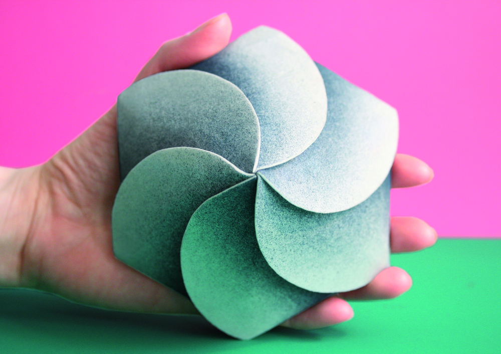 我们参考了很多在自然界中会自动打开的形态构造,以应用在半机械半活性的材料上,这种材料会在高温下改变形状。我们与瑞典Innventia研究公司在这个项目上合作,他们创造出的物料,完全基于活体生物概念并可生物降解。