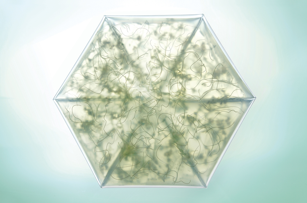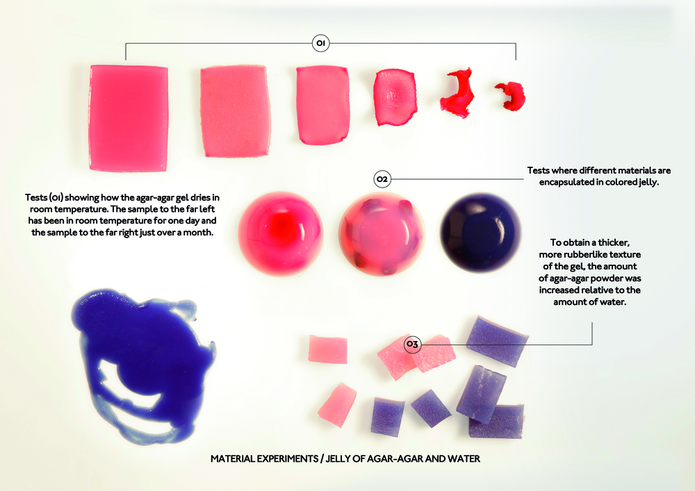 微型菜园同样使用海藻凝胶为栽培的介质,这样做的好处是可以让花园维持自足,也就是说微型植物们完全不需要浇水,它们会从凝胶中吸取湿气。透明的凝胶同时也让栽种的住家农夫清晰地看到从发芽到生根的整个过程。