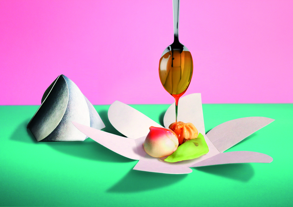 最后要介绍的,是会自动开启的食物包装盒。这卷曲的包装就像馄饨,当它在微波炉加热的同时,包装就会由裡向外慢慢展开,像盛放的花般,将裡面的食物展现在你眼前。